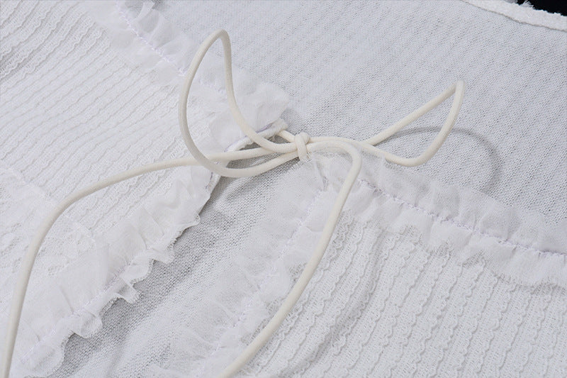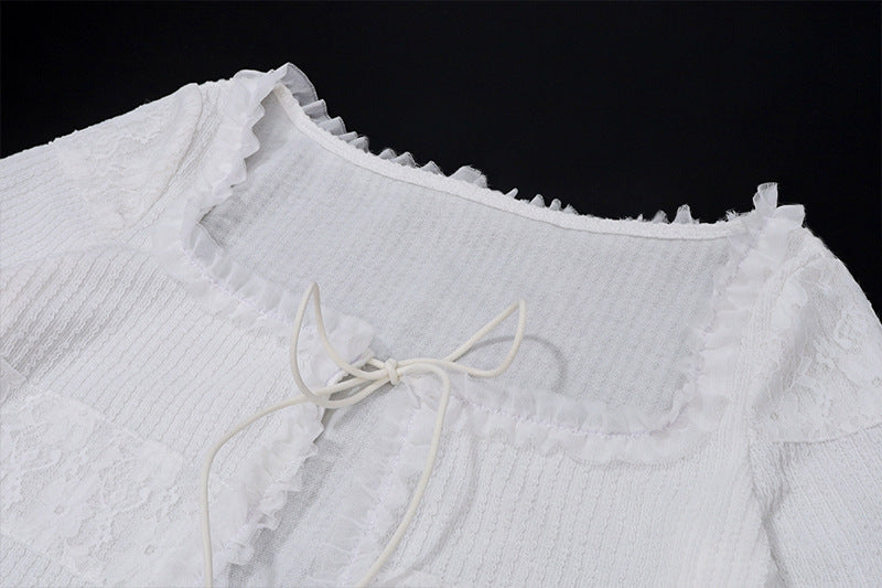 2 Piece Women Skirts Outfits Y2K Fairy Vintage Long Sleeve Cardigan Tops + Ruffle Mini Skirt 00s Retro Coquette Matching Set