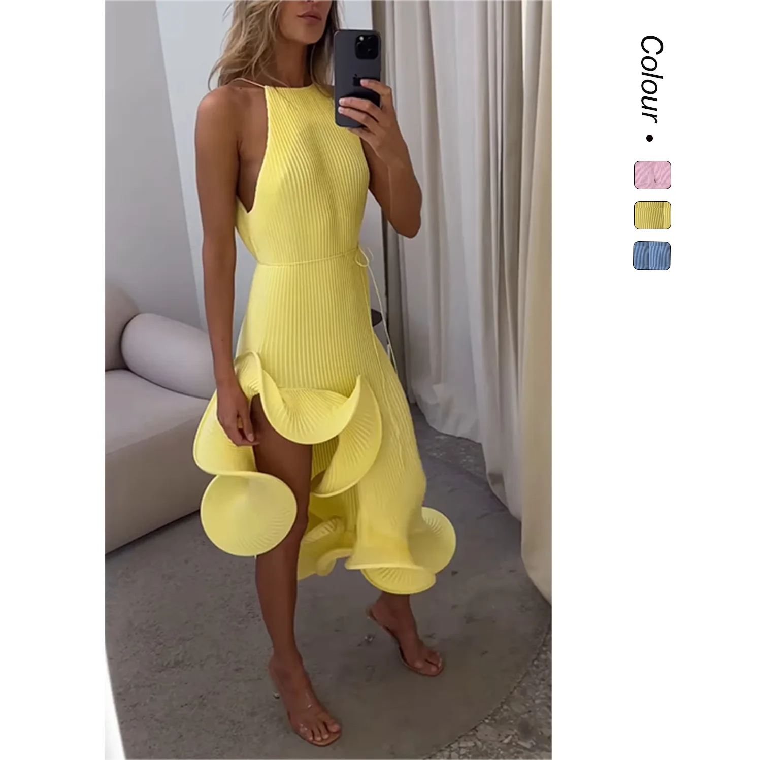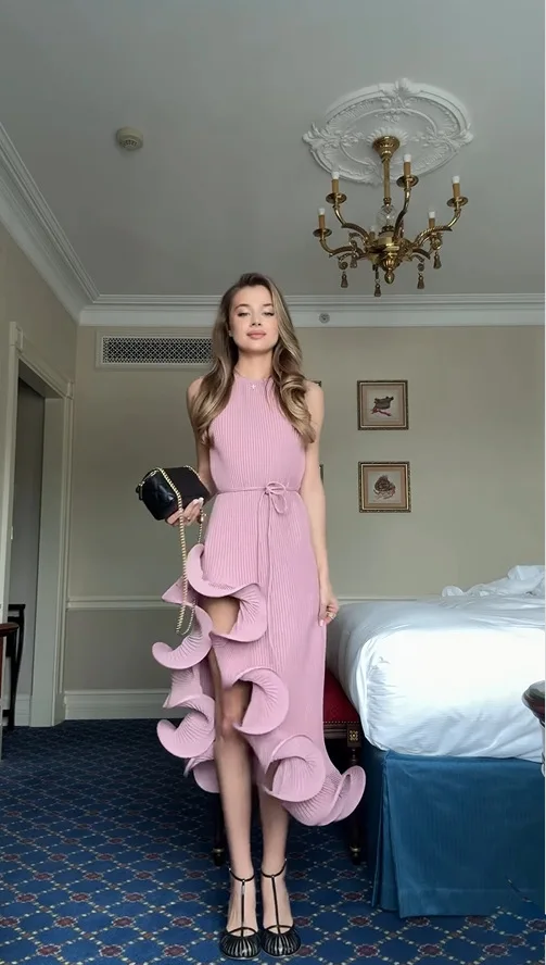 2025 Summer Fashion New Women's Elegant and Sexy Vacation Style Irregular Sleeveless Waist Slimming Long Dress