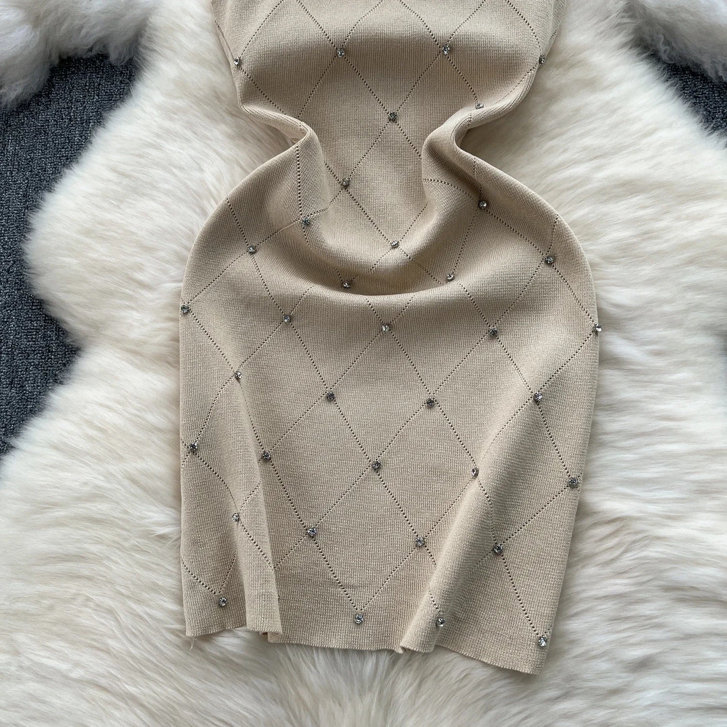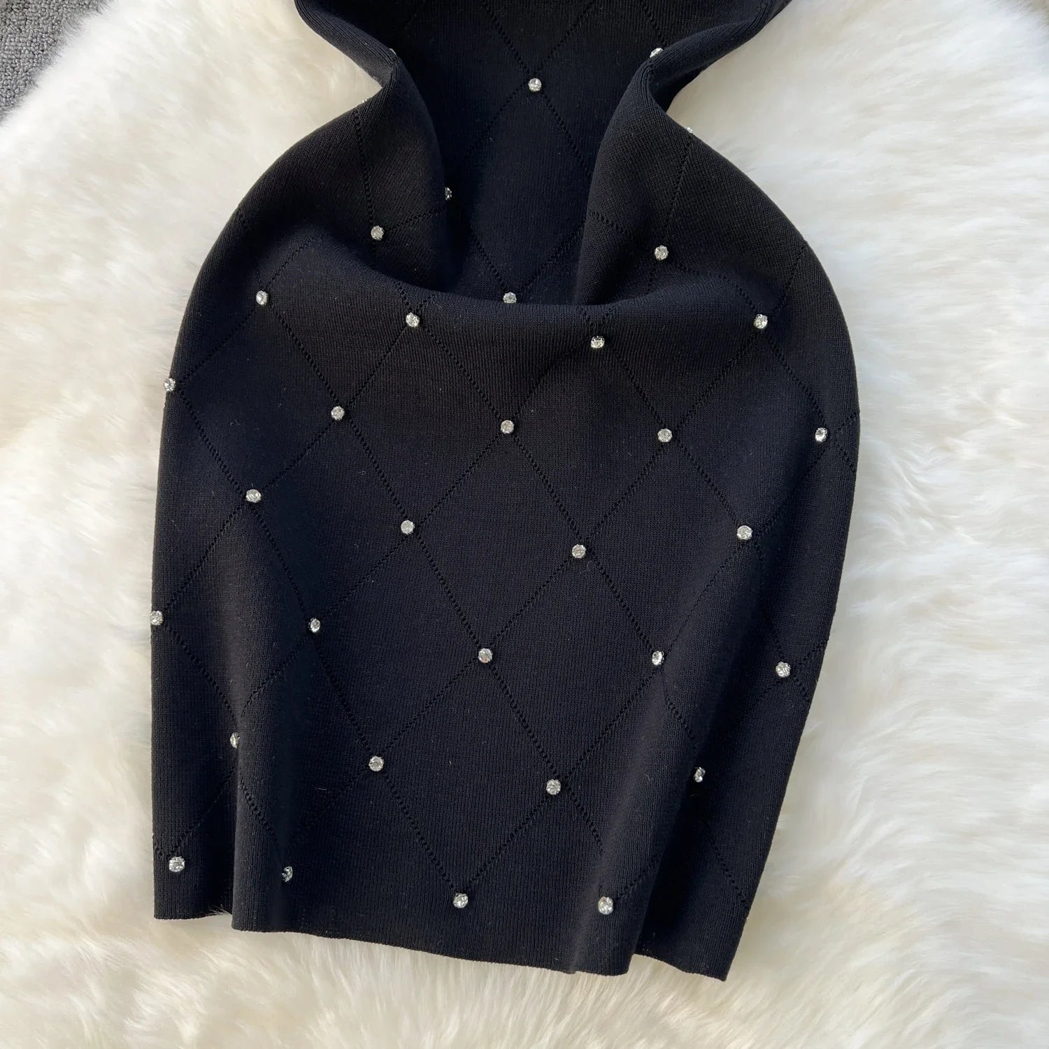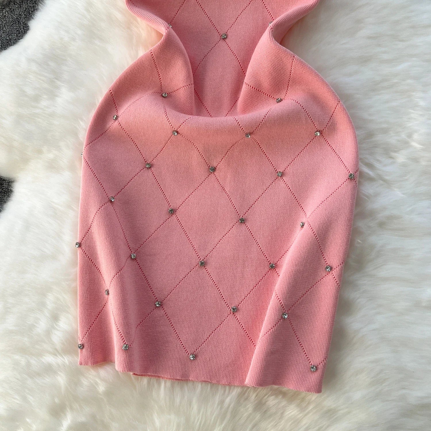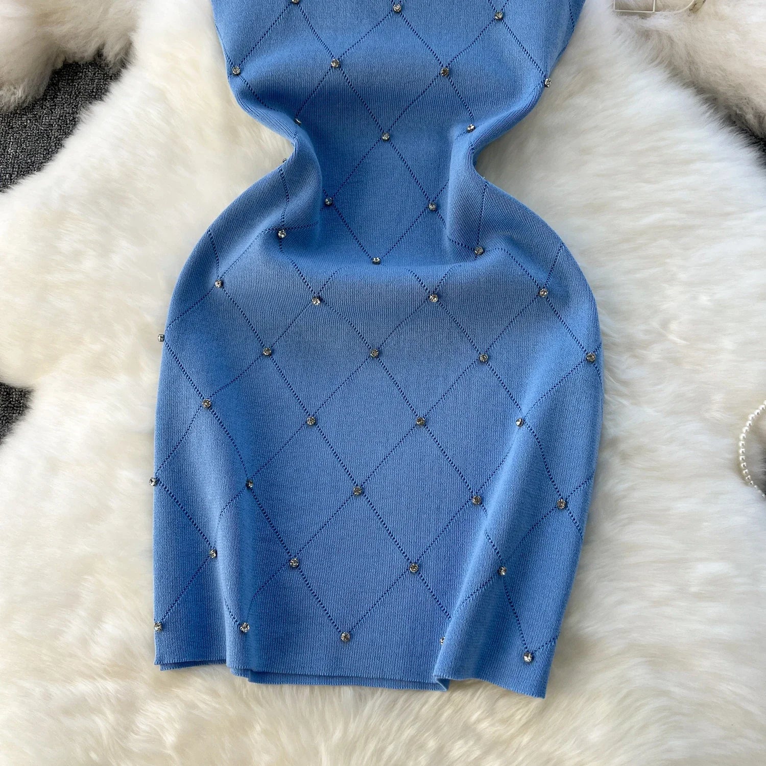 Beading Summer Women's Knitting Sheath Tank Dress Female Bodycon Knitted Camisole Sleeveless Mini Dresses For Woman Outfits