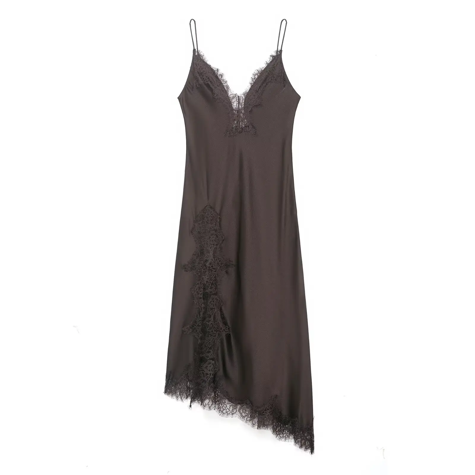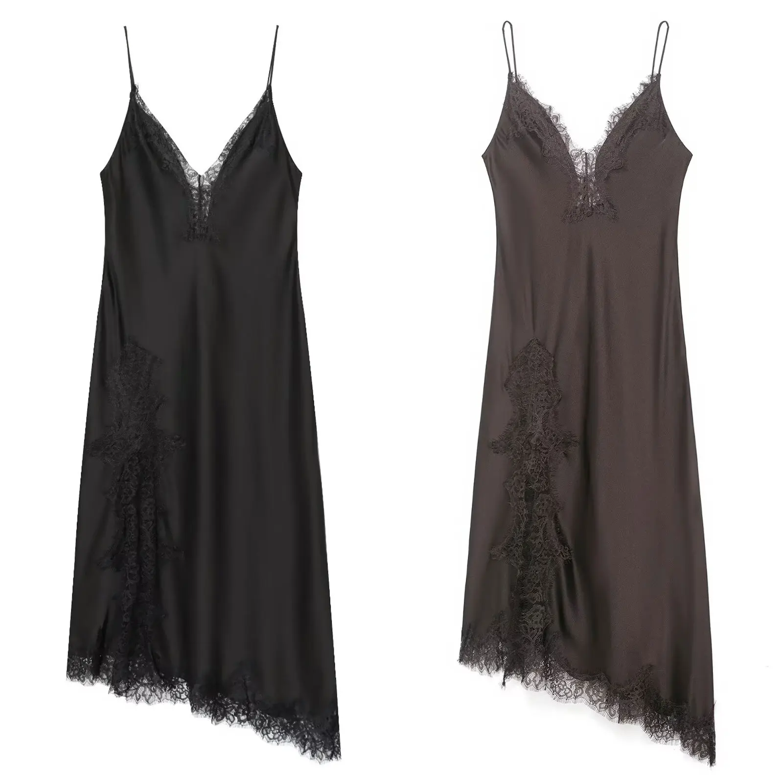 HH Women Fashion Lace Splicing Satin Texture Long Dress Sexy Backless Sleeveless Dresses Summer Lady Trend Party Evening Dress