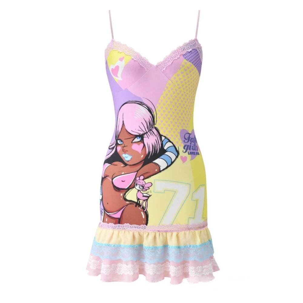 HLJ&GG Y2K Fashion Lace Splicing Bodycon Spaghetti Strap Mini Dresses Women Sleeveless Backless V Neck Slim Vestidos Streetwear
