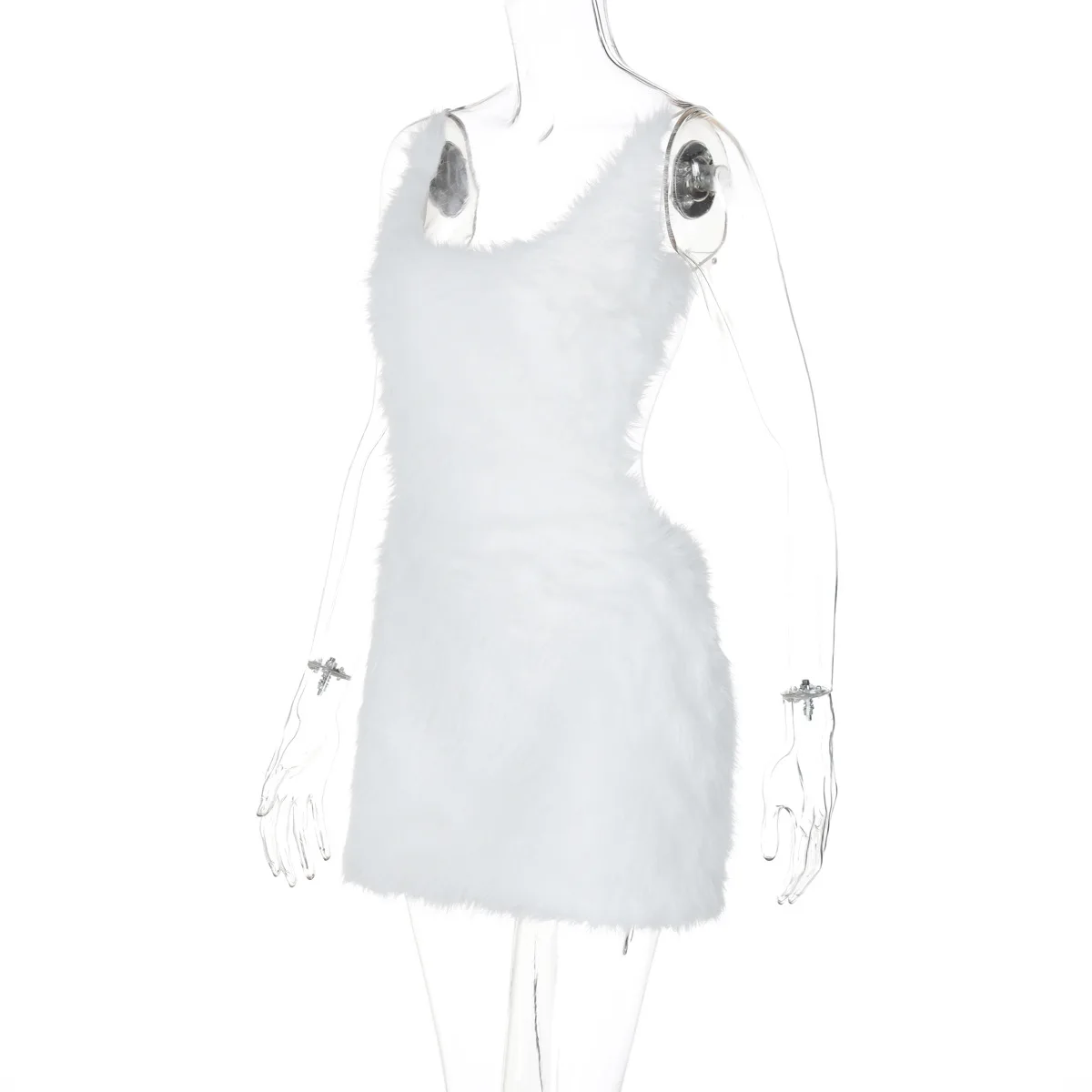 Ladies Summer Feather New Fashion Birthday Party Dress Women Sleeveless Backless Mini Dresses Woman Clothes Club Streetwear 2025