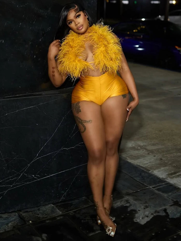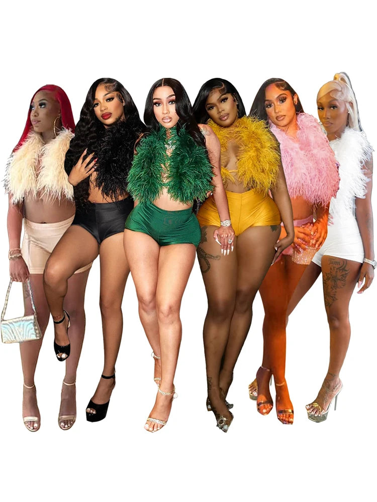 Luxury Fur Patchwork 2 Pieces Set for Woman Outfit Summer 2025 New Tank Top and Stretch Shorts Midnight Club Wear Party Suits