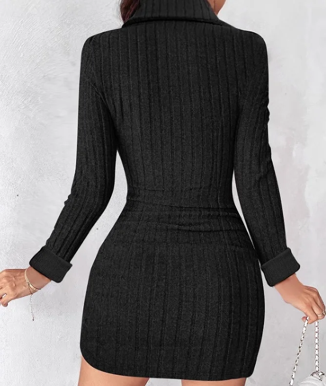 New autumn and winter solid color V-neck fitted bodycon long sleeve dress for women from Europe and America.