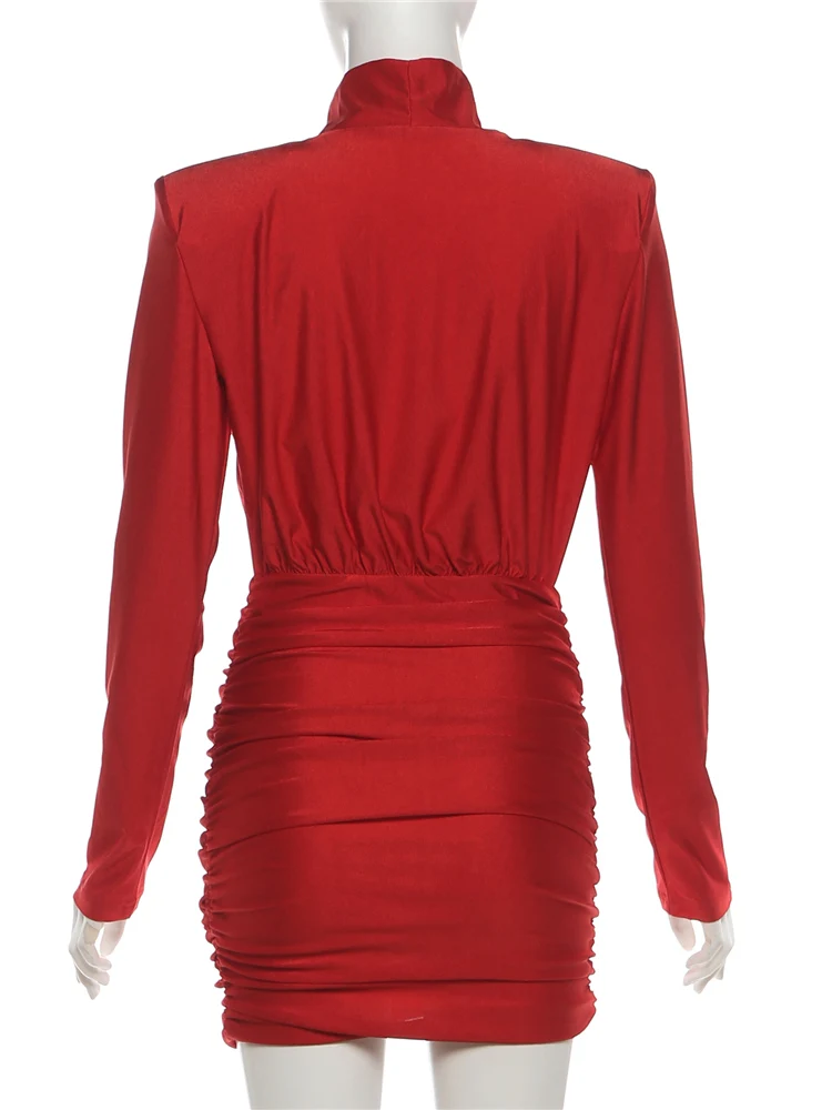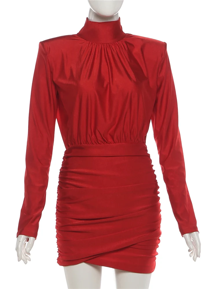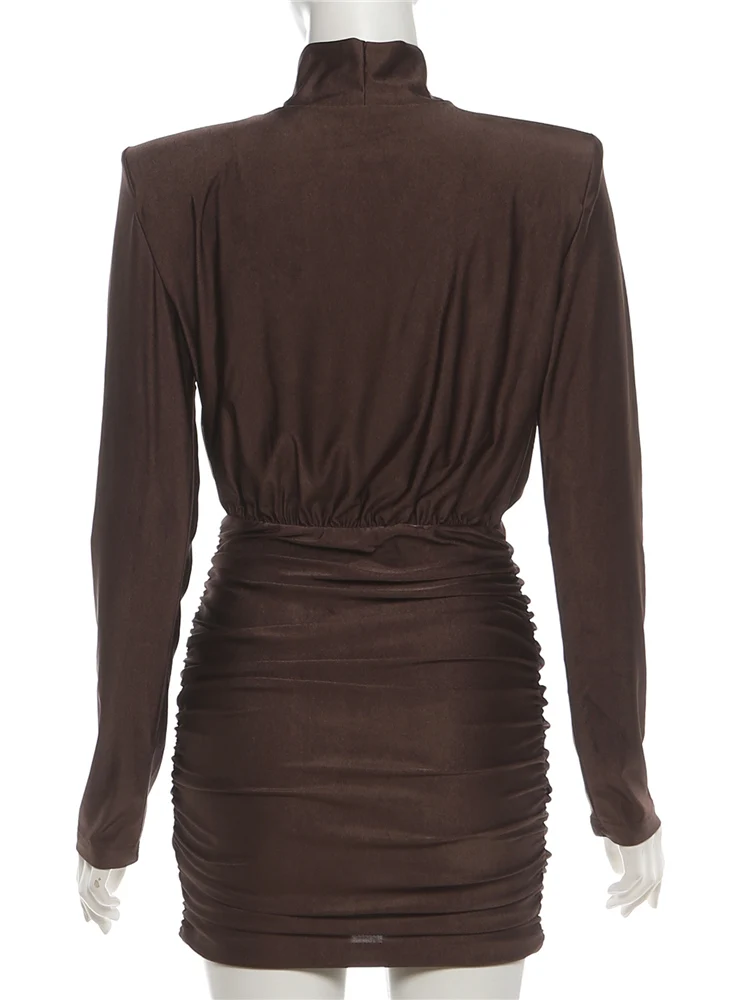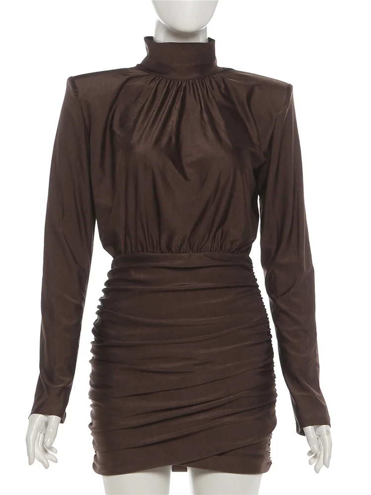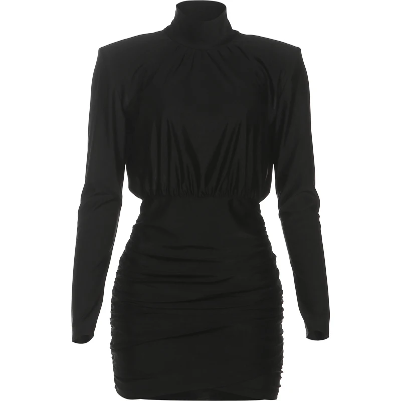 Nibber Classic Turtleneck Dress Women Shoulder Padded Ruched Sexy Office Commute Simple Peach Hip Skinny Elegant Mini Bodycon