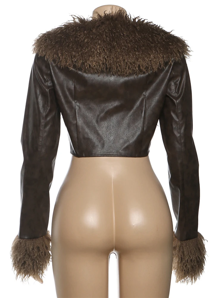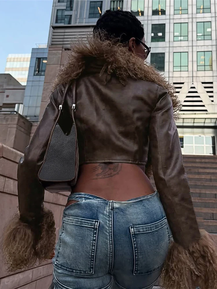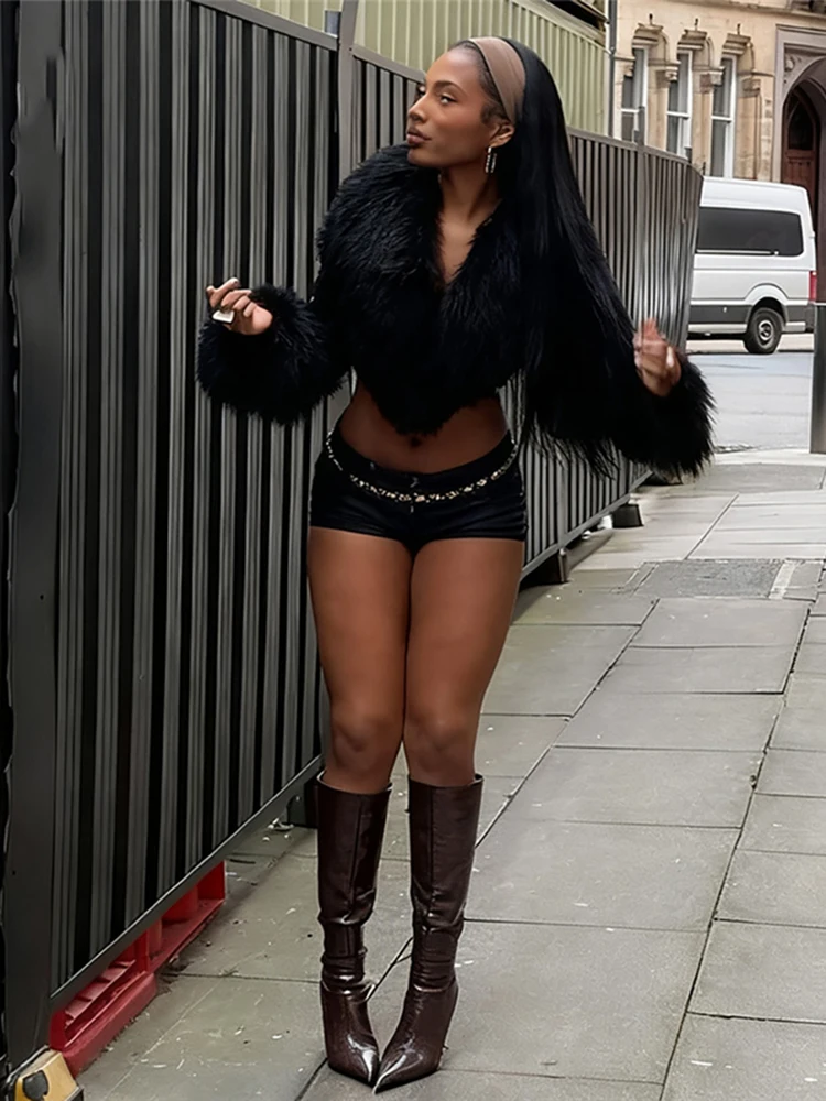 Nibber Wild Coats Woman Furry Tassel Decoration Autumn Trend Low-Neck Full Sleeve Navel Exposed High Street Style Classic Tops