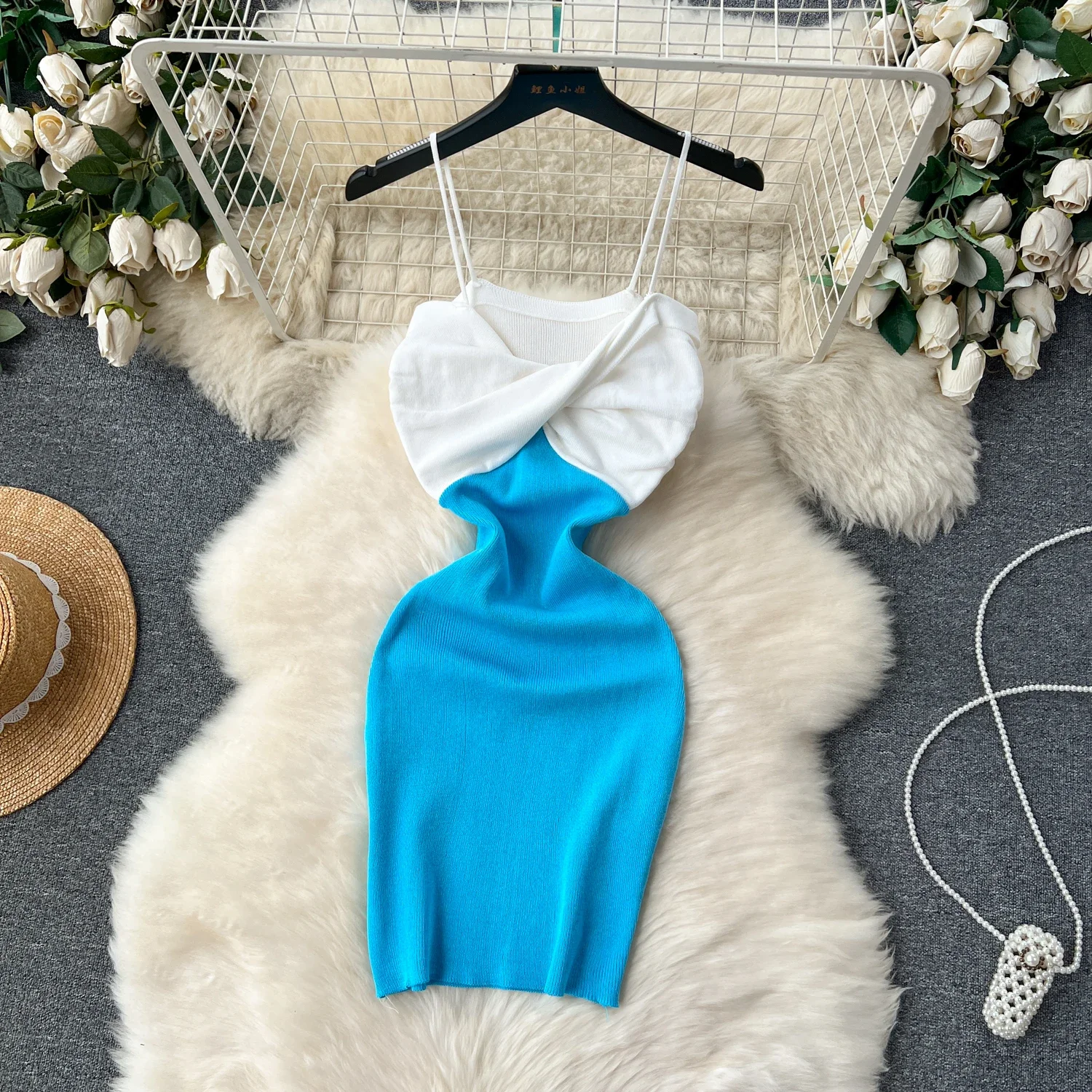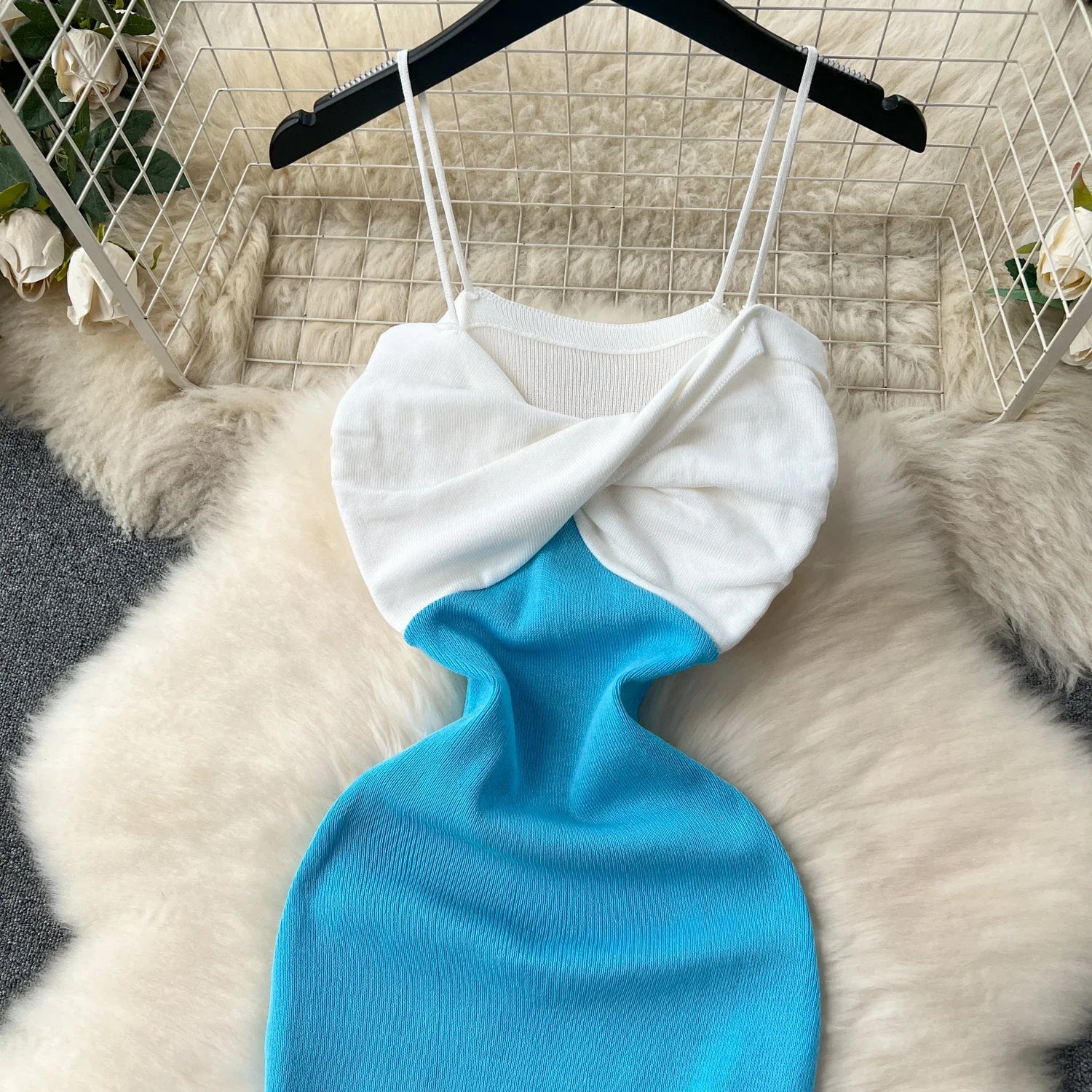 Patchwork Chic Sexy Wrap Hips Mini Dress Women Y2K Elastic Knitted Bodycon Summer Dress Streetwear Ladies Outfits Sundress