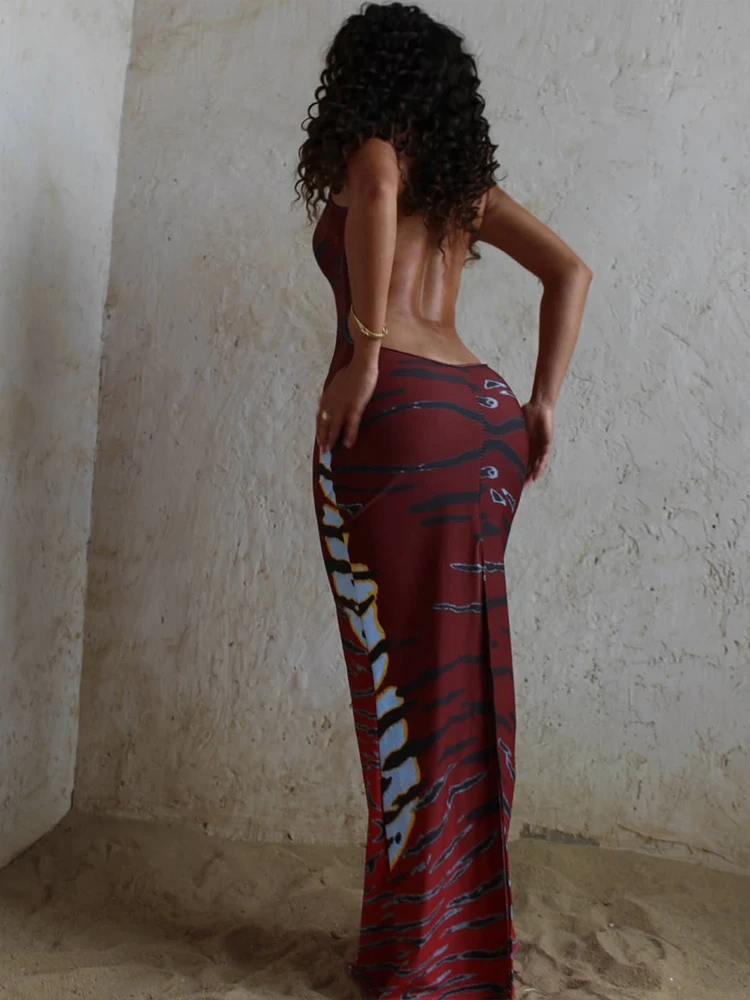 Sisterlinda Backless Maxi Dress Women Sleeveless Leopard Print Sexy Skinny Clubwear Stretch Tight Beach Vacation Slim Vestidos