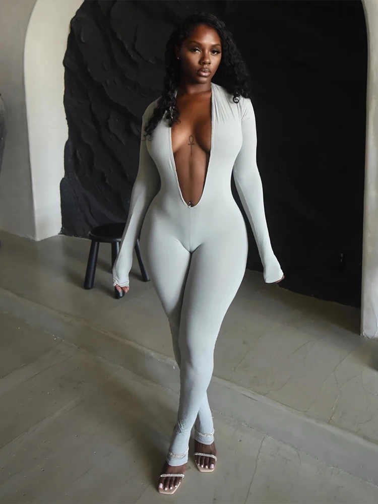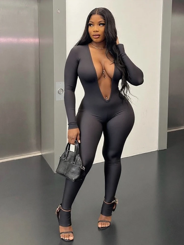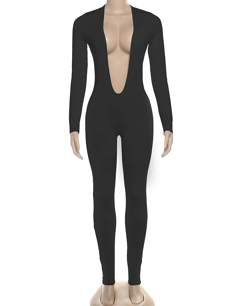 Weird Puss Backless Sexy Jumpsuit Women Basic Classics Deep V Neck Full Sleeve Backless Trend Midnight Clubwear Workout Overalls