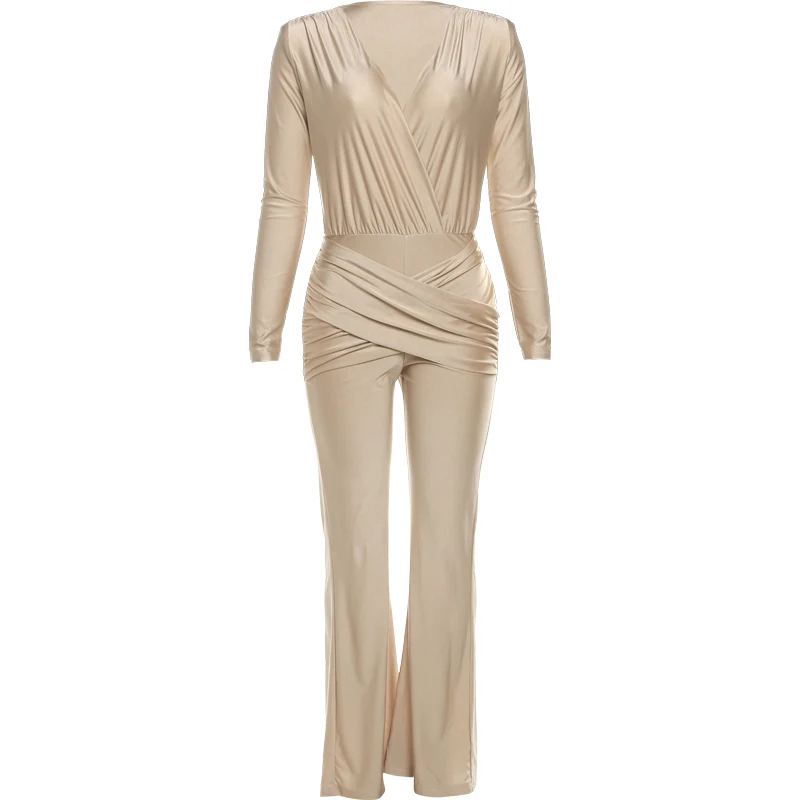 Weird Puss Cross Ruched Jumpsuit Women Patchwork Deep v-Neck Full Sleeve Elegant Skinny Stretch Workout Office Classic Overalls