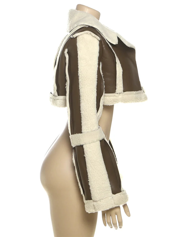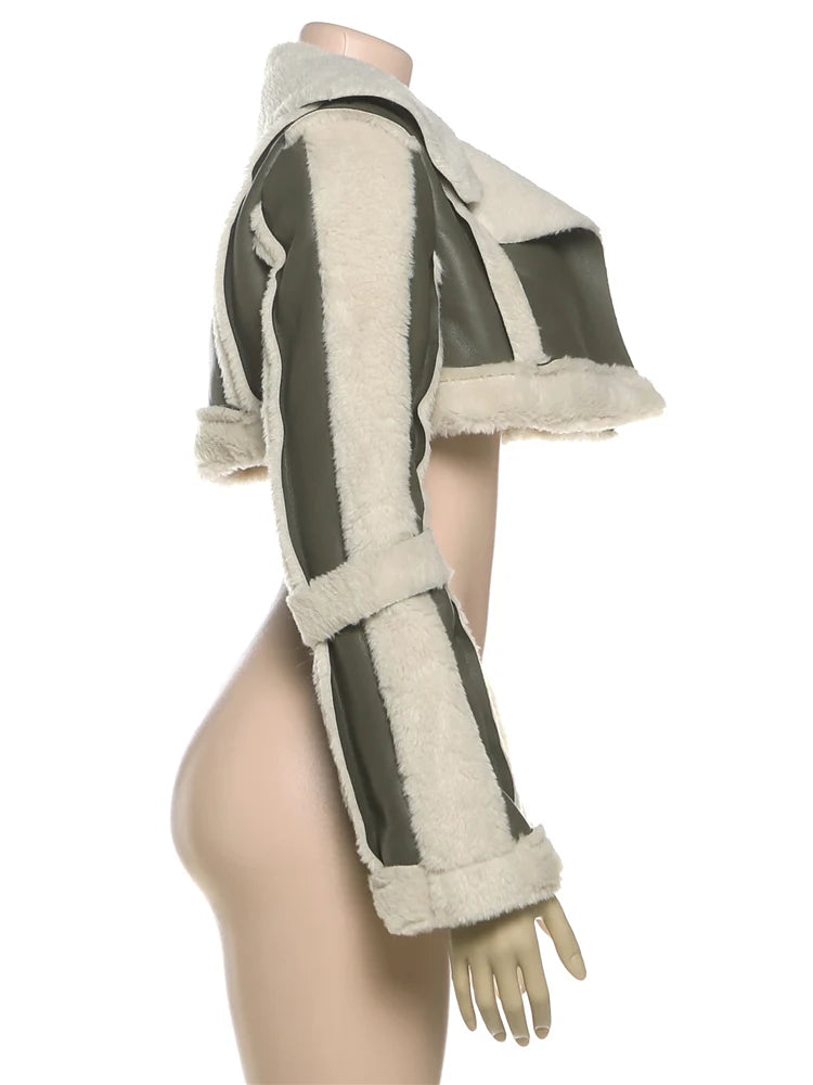 Weird Puss Furry Patchwork Women Crop Jacket Hipster Full Sleeve Open Stitch Hipster Streetwear Warm Outwear Basic Wild Coat
