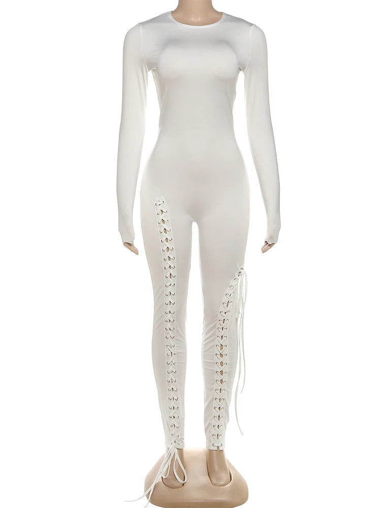 Weird Puss Sexy Fall Jumpsuits Women Diy Shirring o-Neck Full Sleeve Midnight Party Club Stretch Activity Fitness Slim Overalls