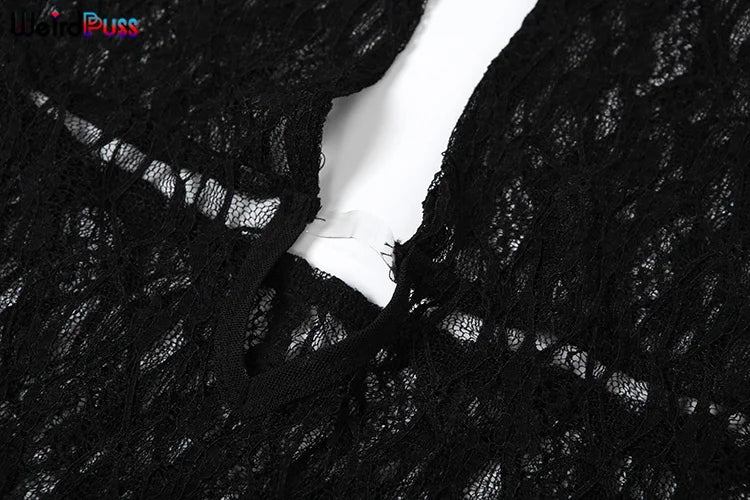 Weird Puss Sexy Mesh Halter Jumpsuit Women Backless Skinny Low-Neck Midnight Birthday Party Clubwear Activity Workout Overalls