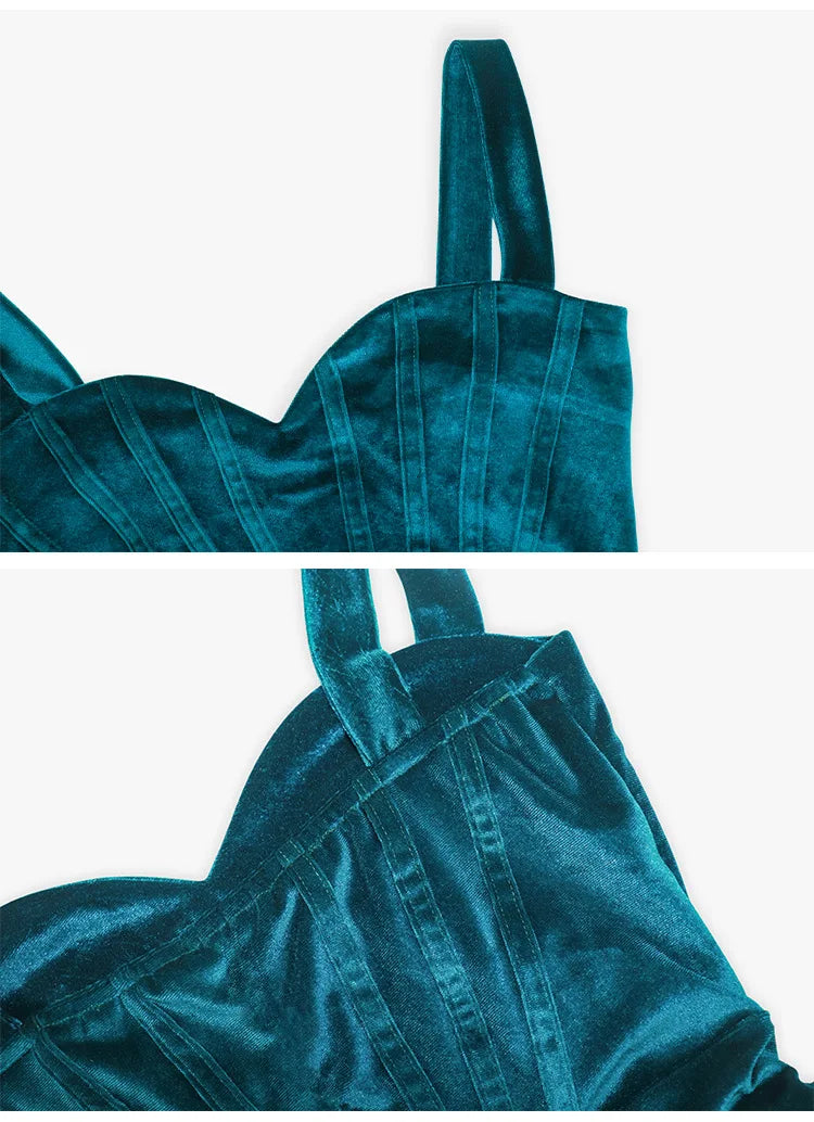 Women Elegant Dress Golden Velvet Suspender Dress Female Imitation Fishbone Design Tuck Waist Bag Hip Women Evening Party Dress