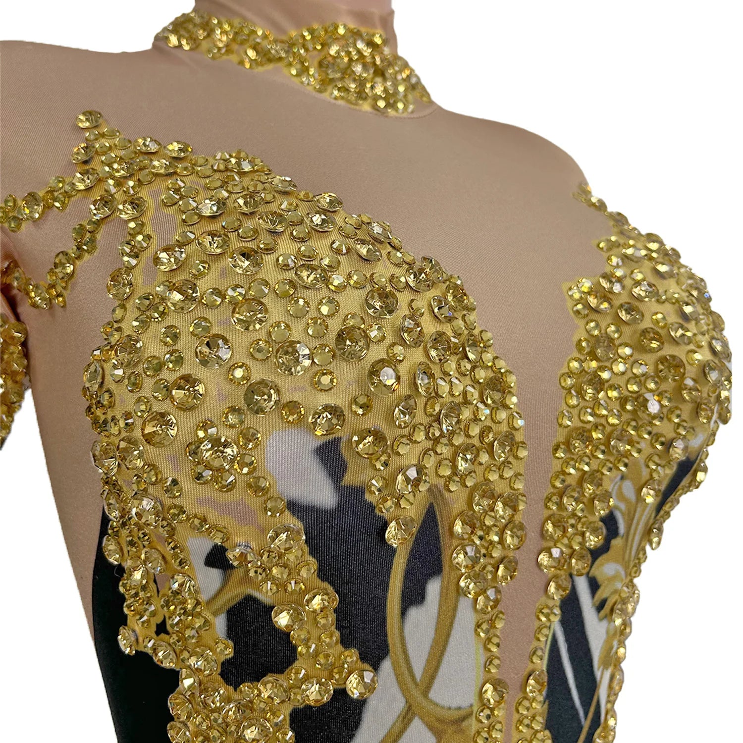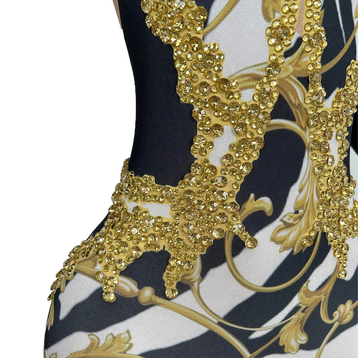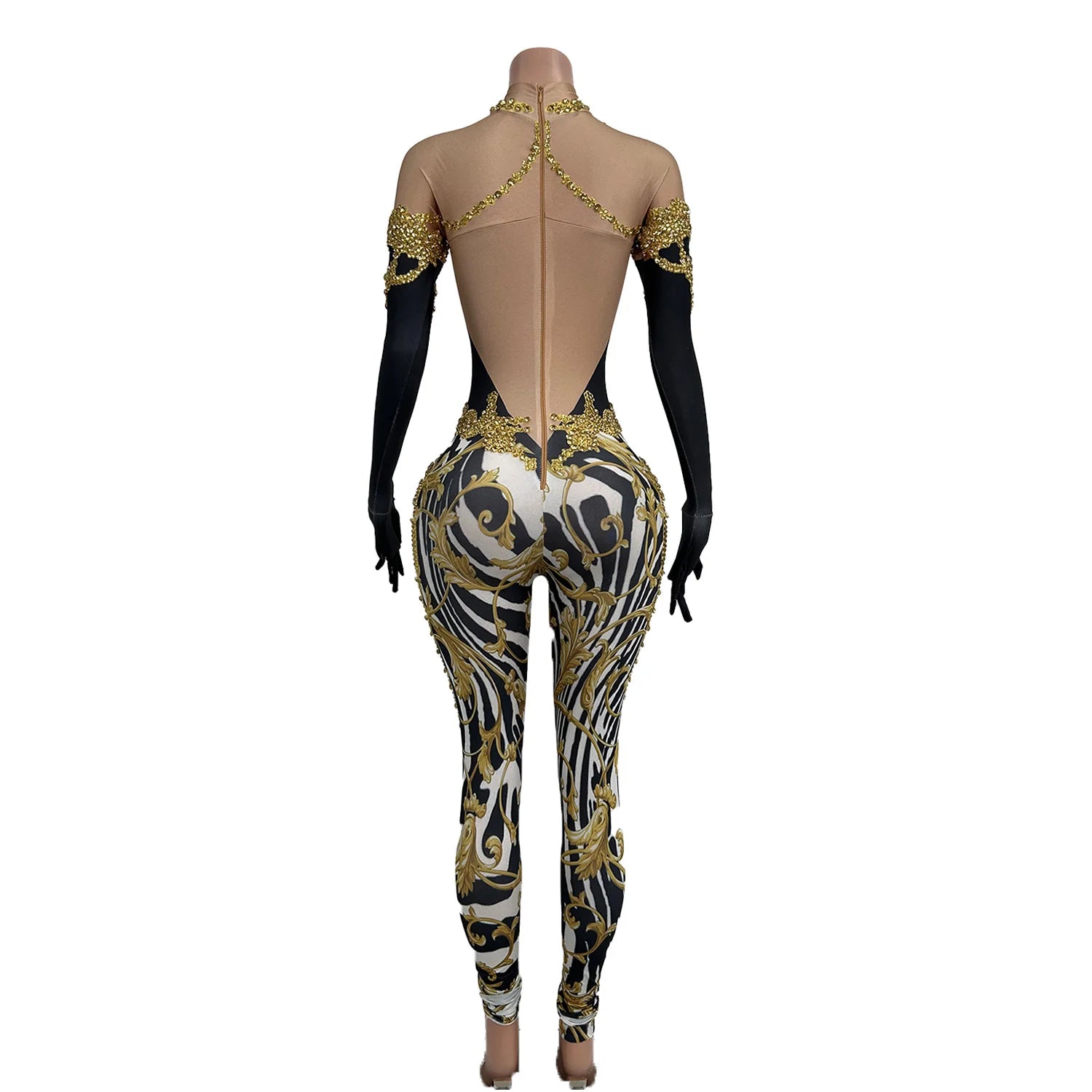 Women Sparkly Goddess Senior Photoshoot Props Las Vegas Show Zebra Jumpsuits Carnival Gold Romper Drag Queen Costume Xiama